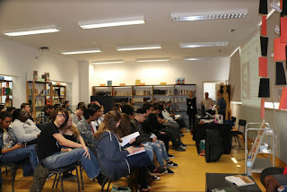 Durante a sessão formativa, os alunos conheceram, através de imagens, filmes e da participação musical ativa, algumas páginas da História de Portugal e das canções que ajudaram a fazer e a continuar o espírito de abril.