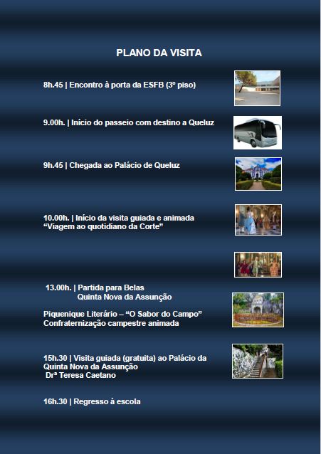 - Encontro em frente à Bilheteira do Palácio de Queluz, às 9h.30 (em ponto).